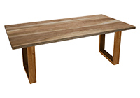 $3869 for 111x42 inch Table. This Odessa table has a live edge shape tabletop with espresso stained finish and natural spanish cedar table legs and can be use as counter-height table, solid wood writing table, and more. The table surface maintains integrity smoothly along with beauty under frequent and varied use. In flexible layouts, it encourages collaboration while supporting focused work or formal presentations.