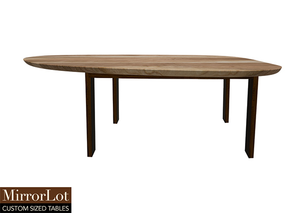 $3729 for 112x38 inch Table. This Buford table has a beveled knife edge unique round shape tabletop with natural cherry finish and bronze walnut stained table legs and can be use as restaurant table, oval table, and more. In real-world settings, the table feels designed for how people actually live while also work without feeling forced. From day to day, its proportions help large spaces feel purposeful as well as anchored in real-world settings.