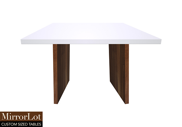 $2539 for 114x20 inch or 9.5 ft Table. This Stockton table has a square shape tabletop with white finish and natural african mahogany table legs and can be use as bistro table, solid wood table for daily use, and more. Rather than standing out loudly, the table feels quietly well made without drawing attention. As routines develop, its expansive surface supports multiple users simultaneously while maintaining a sense of order as well as sophistication. For many people, its scale allows multiple seating arrangements without compromising comfort or accessibility.