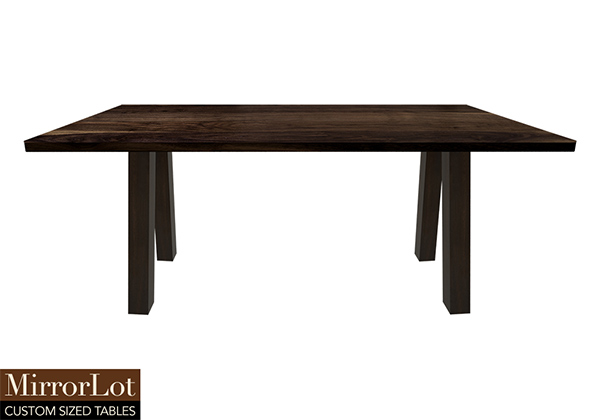 $4049 for 114x36 inch or 9.5 ft Table. This Victoria table has natural american walnut finish tabletop and dark kona brown/espresso stained table legs and can be use as café table, communion table, and more. The 114 inch table commands attention confidently while remaining harmonious within the room. This table often serves as a quietly dependable anchor within a room. The 114 inch table feels reliable along with enduring, built to withstand repeated use in demanding environments.