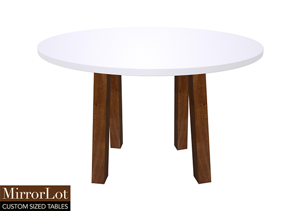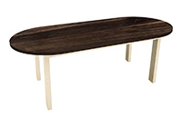 $5379 for 114x55 inch or 9.5 ft Table. This Monterey table has a round shape tabletop with white finish and natural african mahogany table legs and can be use as solid wood project table, solid wood table for work and dining, and more. Over time, this table often confidently proves its value through daily, repeated use. As routines develop, the 114 inch table feels reliable as well as enduring, built to withstand repeated use in demanding environments in a very natural way.