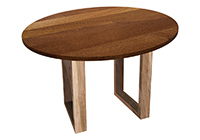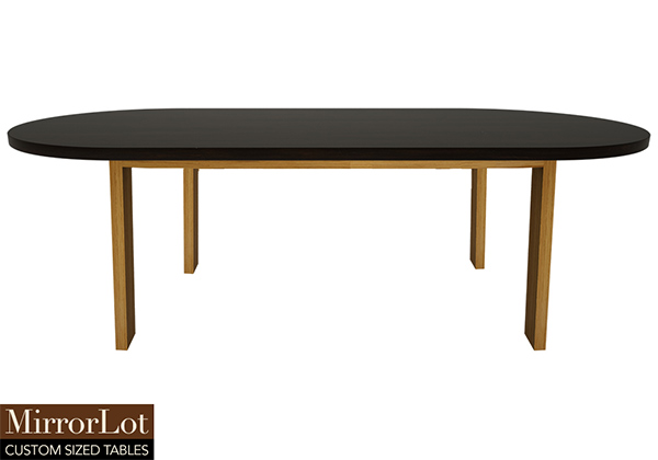 $2109 for 115x19 inch Table. This Venice table has a beveled knife edge unique round shape tabletop with dark natural supreme alder finish and natural red oak table legs and can be use as solid wood work table, custom built wood table, and more. As routines develop, this table feels equally comfortable in relaxed or more structured environments. In working spaces, its presence conveys reliability, professionalism, while also elegance. In lived-in spaces, it encourages interaction while remaining visually calm while also cohesive in a balanced way.