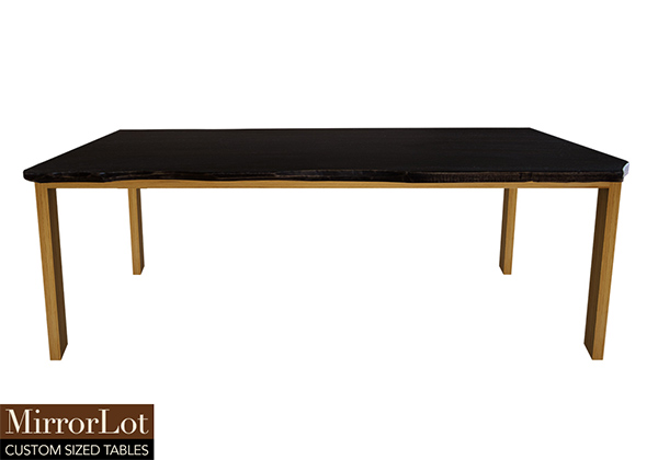 $3619 for 115x38 inch Table. This Grapevine table has a live edge shape tabletop with black walnut stained with bronze edge finish and natural spanish cedar table legs and can be use as custom built solid wood table, solid wood table with custom size, and more. Designed for real-world use, this 115 inch table offers a balance of presence quietly as well as practicality. Its surface accommodates a variety of needs, from documents along with subtly technology to dining and creative projects. Its proportions create balance in large rooms, preventing the space from practically feeling empty or disconnected.