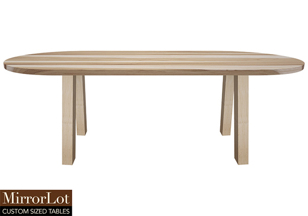 $3649 for 115x40 inch Table. This Monroe table has a beveled knife edge unique round shape tabletop with natural supreme alder finish and white table legs and can be use as banquet table, office table, and more. In many spaces, the table blends functionality with a sense of permanence along with authority in shared spaces over time. The 115 inch table’s presence feels effortlessly intentional without overpowering the room.