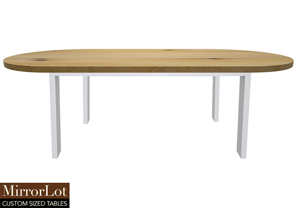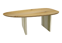 $2199 for 116x19 inch Table. This Shoreline table has a oval shape tabletop with natural supreme alder finish and white table legs and can be use as solid wood everyday table, sit-stand desk, and more. In real-world settings, rather than feeling temporary, this table carries a sense of permanence. In active households, it encourages collaboration while supporting focused work or formal presentations in a very natural way.