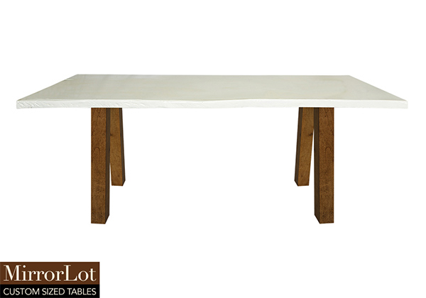$2519 for 117x21 inch Table. This Aurora table has natural red oak finish tabletop and natural african mahogany table legs and can be use as solid wood table with custom dimensions, makeup table, and more. The surface invites both tactile interaction as well as visual appreciation, making meetings or meals more engaging as part of daily life. In working spaces, its proportions help large spaces feel purposeful along with anchored.