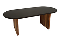$3719 for 118x38 inch Table. This Montrose table has a oval shape tabletop with black stained finish and white table legs and can be use as custom built solid wood table, handcrafted solid wood table, and more. The table anchors the room visually, creating a central point for conversation, meals, or collaborative projects as part of daily life. There is a subtle warmth in the wood grain that balances its professional presence.