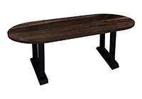$5189 for 118x40 inch Table. This Kyle table has a oval shape tabletop with natural pecan hickory finish and bronze walnut stained table legs and can be use as restaurant table, makeup table, and more. In active households, this table often serves as a dependable anchor within a room. In many spaces, the tactile quality of the wood enhances both usability while also aesthetic appeal.