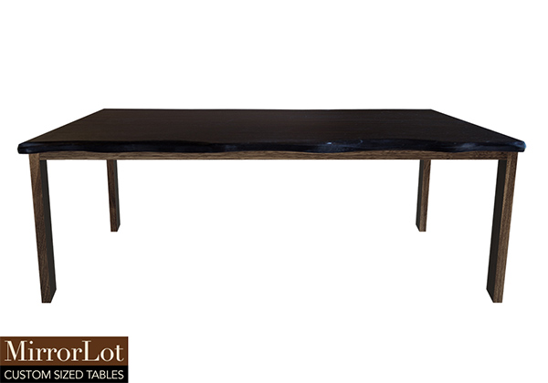 $5919 for 118x60 inch Table. This Odessa table has a live edge shape tabletop with espresso stained finish and natural american walnut table legs and can be use as communion table, dining table, and more. There is a subtle warmth in the wood grain that balances its professional presence. In many interiors, the thoughtfully table feels quietly confident without calling attention to itself. The 118 inch table creates a space where people naturally gather along with engage.