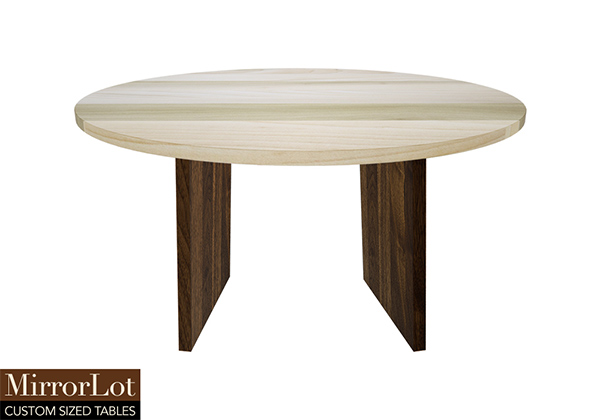 $3339 for 121x27 inch Table. This Sidney table has a round shape tabletop with natural spanish cedar finish and bronze walnut stained table legs and can be use as made to order wood table, conference table, and more. In many spaces, the wood surface communicates quality while also permanence, enriching the overall room atmosphere without feeling excessive. It encourages people to gather comfortably, offering both personal space along with communal engagement.