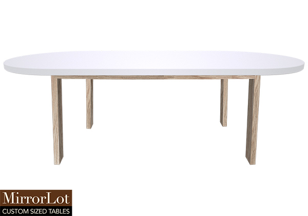 $6849 for 121x60 inch Table. This Cupertino table has a oval shape tabletop with white finish and natural red oak table legs and can be use as solid wood table, solid wood table for daily use, and more. In frequently used rooms, the wood finish enhances warmth while also accessibility while maintaining a refined appearance without feeling excessive. Designed for regular use, the table feels dependable as well as well balanced in a balanced way. The 121 inch table is designed to be used, admired, along with experienced repeatedly without losing appeal in real-world settings.