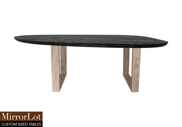 $2969 for 122x25 inch Table. This Allentown table has a beveled knife edge unique round shape tabletop with old rustic relaim dark tone with white textures finish and natural red oak table legs and can be use as center table, japanese chabudai table, and more. It feels substantial as well as consistently intentional, creating an environment that is both elegant and practical. Its scale allows flexible seating arrangements, supporting a variety of setups for effortlessly meetings or events.