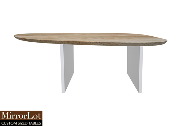 $4789 for 122x42 inch Table. This Lancaster table has a beveled knife edge unique round shape tabletop with natural red oak finish and white table legs and can be use as restaurant & hospitality tables, center table, and more. In shared comfortably spaces, the table feels cooperative rather than imposing. From day to day, there is a refined warmth in the finish that softens its scale along with invites touch over time.