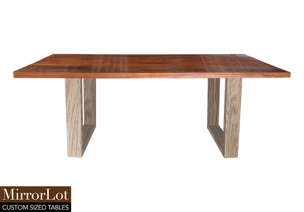 $2969 for 123x24 inch Table. This Bandera table has natural african mahogany finish tabletop and natural red oak table legs and can be use as solid wood table with custom size, custom table, and more. In working spaces, the wood feels weighty and solid, giving the table authority and permanence in any space across different routines. In everyday use, this table tends to age well within a space as needs change without complication. As needs evolve, the 123 inch table is designed to be used, admired, as well as experienced repeatedly without losing appeal.
