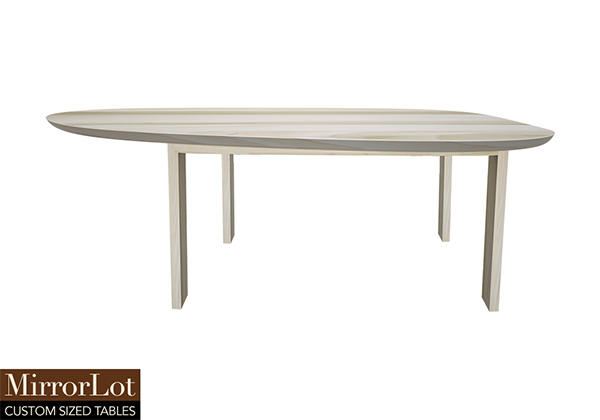 $2659 for 124x23 inch Table. This Lima table has a beveled knife edge unique round shape tabletop with natural poplar finish and can be use as bedroom tables, boat-shaped table, and more. As habits form, this 124 inch table offers a sense of structure without feeling rigid in real-world settings. Its dimensions create a rhythm in the room, drawing people together naturally.