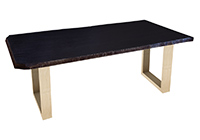 $3469 for 124x31 inch Table. This Frisco table has a live edge shape tabletop with dark espresso stained with bronze edge finish and natural supreme alder table legs and can be use as dining table, center table, and more. In lived-in spaces, rather than standing out loudly, the table feels quietly well made. The 124 inch table inspires respect and attention while remaining approachable and usable as part of daily life. In practical terms, its surface remains smooth and responsive under repeated use, whether for dining, work, or collaborative projects.