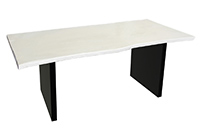 $3239 for 127x28 inch Table. This Chester table has old rustic relaim dark tone with white textures finish tabletop and natural pecan hickory table legs and can be use as custom built solid wood table, nightstand, and more. In frequently used rooms, the wood grain adds texture while also depth that enhances the visual and tactile experience. This 127 inch table feels intentional without being visually demanding. The table holds multiple users comfortably, maintaining balance and comfort across its length.