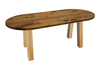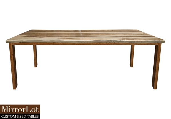 $4669 for 129x30 inch Table. This Hudson table has a live edge shape tabletop with natural pecan hickory finish and natural african mahogany table legs and can be use as standing-height table, boat-shaped table, and more. As habits form, it encourages people to gather comfortably, offering both personal space while also communal engagement over time. In a room, the table feels purposeful without overwhelming surrounding furniture without complication.