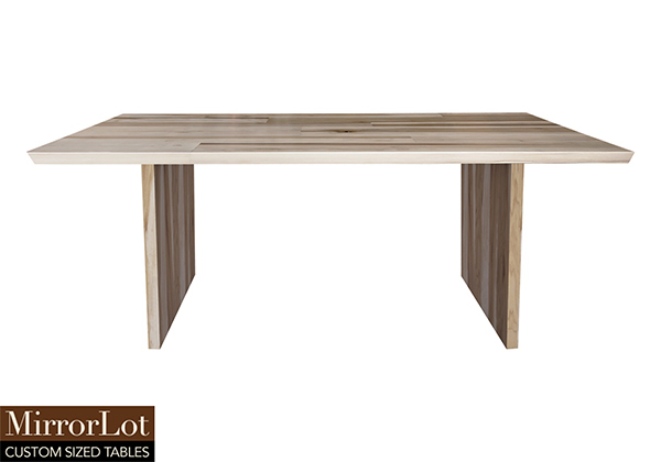 $4219 for 129x38 inch Table. This Newport table has a round shape tabletop with natural poplar finish and natural american walnut table legs and can be use as standing desk, round table, and more. It encourages people to gather comfortably, offering both personal space and communal engagement without effort. The 129 inch table naturally becomes the focal point of any large room, commanding attention without overwhelming other design elements without effort.