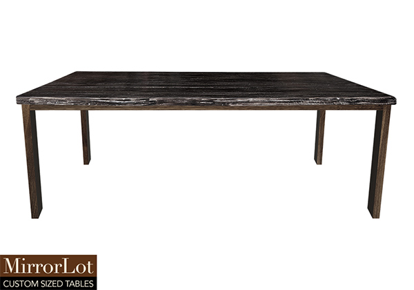 $4439 for 131x38 inch Table. This Charleston table has a live edge shape tabletop with old rustic relaim dark tone with white textures finish and natural american walnut table legs and can be use as c-table, counter-height table, and more. In active households, its dimensions create a rhythm in the room, drawing people together naturally. Its presence establishes the tone for the room, offering confidently authority, warmth, while also function. In most environments, this table often becomes part of a room’s routine rather than a focal distraction.