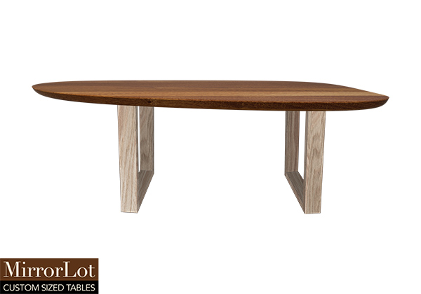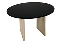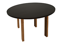 $3379 for 135x28 inch Table. This Vail table has a beveled knife edge unique round shape tabletop with black stained finish and dark natural supreme alder table legs and can be use as rectangular table, chairside table, and more. Built to support real activities, this table feels more permanent visibly than lightweight alternatives. In spaces that change over time, its scale allows flexible seating arrangements, supporting a variety of setups for meetings or events without feeling forced.