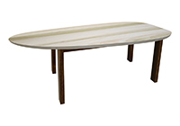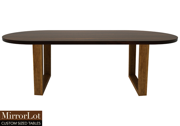 $3589 for 137x30 inch Table. This Springfield table has a oval shape tabletop with bronze walnut stained finish and dark natural supreme alder table legs and can be use as solid wood multipurpose table, japanese chabudai table, and more. In working spaces, the tactile experience of the wood invites touch as well as interaction while communicating quality. In a room, the 137 inch table feels purposeful without overwhelming surrounding furniture without drawing attention.