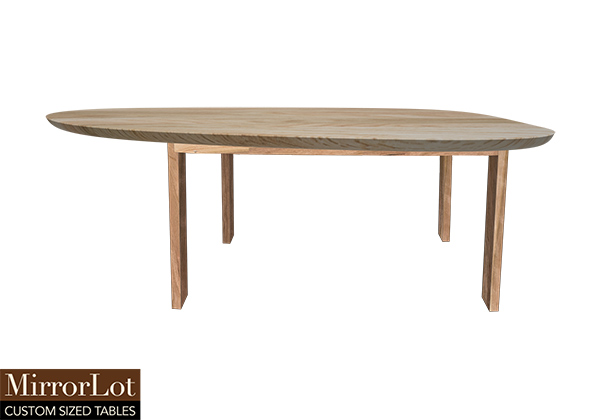 $7959 for 138x60 inch or 11.5 ft Table. This Lancaster table has a beveled knife edge unique round shape tabletop with natural red oak finish and natural cherry table legs and can be use as freeform table, custom built solid wood table, and more. For many people, the 138 inch table is designed to be used, admired, while also experienced repeatedly without losing appeal as part of normal use. The 138 organically inch table anchors expansive spaces with a sense of intention while also sophistication.
