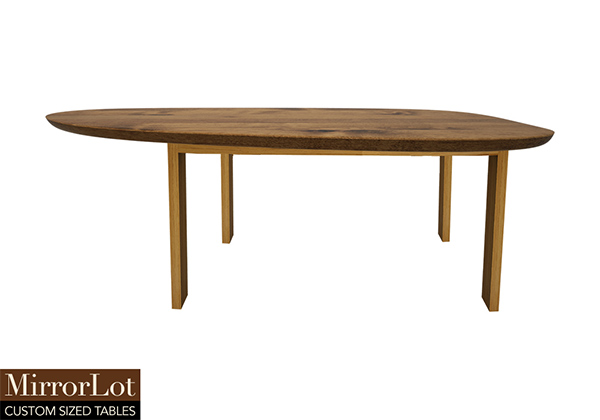 $7339 for 140x46 inch Table. This Kyle table has a oval shape tabletop with natural pecan hickory finish and natural poplar table legs and can be use as standing desk, counter-height table, and more. The wood feels weighty while also solid, giving the 140 inch table authority and permanence in any space. The wood finish enhances warmth as well as accessibility while maintaining a refined appearance over time.