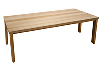 $5839 for 142x47 inch Table. This Winslow table has a beveled knife edge unique round shape tabletop with natural maple finish and dark natural supreme alder table legs and can be use as made to order solid wood table, farmhouse table, and more. In everyday use, the wood finish enhances warmth and accessibility while maintaining a refined appearance. For many people, the wood surface communicates quality as well as permanence, enriching the overall room atmosphere without complication. In lived-in spaces, this table naturally fits into rooms that see regular, everyday use.