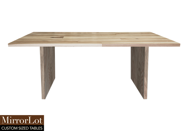 $1309 for 28x20 inch Table. This Trinity table has natural pecan hickory finish tabletop and natural red oak table legs and can be use as mobile kitchen island, solid wood household table, and more. At this size, the table feels grounded and thoughtfully intentional from the moment it enters a space. The wood texture adds warmth that helps soften compact interiors in a very natural way.