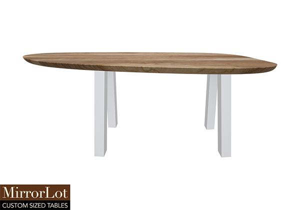 $1419 for 34x30 inch Table. This Charlotte table has a live edge shape tabletop with white finish and natural cherry table legs and can be use as solid wood table built to order, conference & commercial tables, and more. The solid construction gives it staying power practically in busy homes. The 34 inch table fits easily into apartments where every inch matters but style still counts in a balanced way.