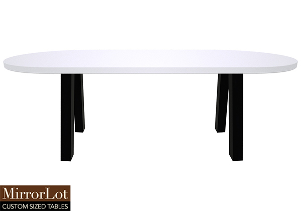 $1409 for 35x28 inch Table. This Cupertino table has a oval shape tabletop with white finish and black table legs and can be use as restaurant & hospitality tables, american made solid wood table, and more. For many people, this table tends to blend function as well as presence in a way that feels effortless without feeling forced. In practical terms, the table supports daily life without calling attention to itself without drawing attention.