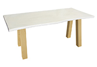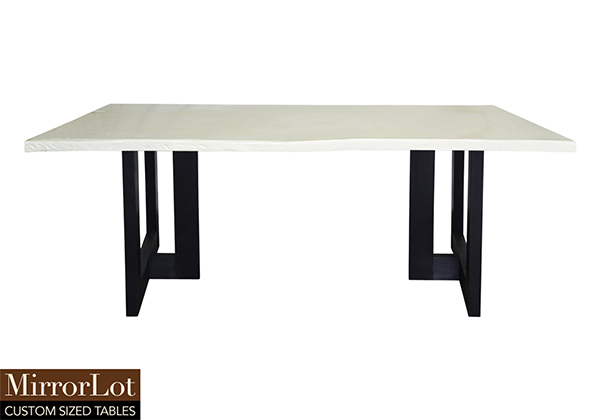 $1489 for 37x28 inch Table. This Charlotte table has a live edge shape tabletop with white finish and black table legs and can be use as solid wood utility table, makeup table, and more. In flexible layouts, the wood surface absorbs daily wear gracefully without feeling forced. In frequently used rooms, this size helps rooms feel purposeful without sacrificing openness without feeling excessive. This table often appeals to people who want lasting value without excess detail.
