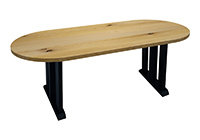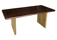 $1329 for 38x25 inch Table. This Murphy table has a beveled knife edge unique round shape tabletop with natural walnut, mahogany, and pecan hickory finish and dark kona brown/espresso stained table legs and can be use as solid wood multipurpose table, solid wood table built in usa, and more. In real-world settings, the table encourages productivity without feeling rigid over time. The scale allows the table to function comfortably in both homes along with studios without feeling excessive.