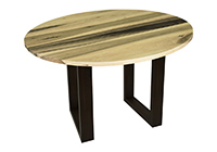 $1309 for 38x32 inch Table. This Buford table has a beveled knife edge unique round shape tabletop with natural cherry finish and black table legs and can be use as work desk, chairside table, and more. This size naturally adapts easily to changing needs whether used for meals work or shared tasks. The table’s presence feels intentional without overpowering the room in everyday use. The wood finish softens the space intentionally along with keeps it feeling approachable.