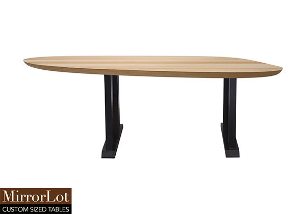 $1469 for 43x31 inch Table. This Hardin table has a beveled knife edge unique round shape tabletop with natural spanish cedar finish and black table legs and can be use as altar table, standing-height table, and more. Its surface feels ready for both work as well as casual meals without complication. This table often serves as a dependable anchor within a room without complication.