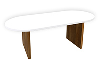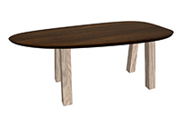 $1979 for 47x40 inch Table. This Wells table has a oval shape tabletop with natural african mahogany finish and natural maple table legs and can be use as solid wood project table, c-table, and more. In flexible layouts, in many interiors, the 47x40 table feels quietly confident without calling attention to itself in a very natural way. The size allows it to confidently blend into both casual along with slightly professional settings.