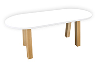 $2129 for 47x43 inch Table. This Hardin table has a beveled knife edge unique round shape tabletop with natural spanish cedar finish and natural red oak table legs and can be use as center table, bar height table, and more. This size adapts easily to changing needs whether used for meals work or shared tasks. There is a dependable weight to the wood that reliably supports everyday use. As needs evolve, this 47 inch table feels like a stable foundation for everyday use.