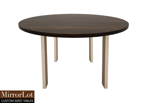 $2039 for 47x44 inch Table. This Cambridge table has a round shape tabletop with bronze walnut stained finish and natural maple table legs and can be use as made to order solid wood table, japanese chabudai table, and more. The surface remains stable even when used for noticeably longer work sessions. In many spaces, its scale helps the room feel balanced along with functional.