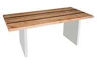 $1369 for 51x25 inch Table. This Vail table has a beveled knife edge unique round shape tabletop with black stained finish and natural supreme alder table legs and can be use as architecture table, counter-height table, and more. There is a reassuring weight to the table that keeps it steady without drawing attention. In active households, it supports family routines as well as shared moments throughout the day. In frequently used rooms, this table supports everyday routines without demanding extra attention.