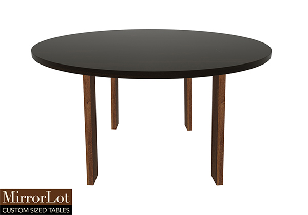$2159 for 52x44 inch Table. This Parker table has a round shape tabletop with black stained finish and natural cherry table legs and can be use as solid wood table built in usa, display table, and more. As habits form, the table adapts well to different seating arrangements over time. Rather than standing out loudly, the 52 inch table feels quietly well made in a very natural way. The wood surface offers room to spread out effortlessly without feeling excessive.