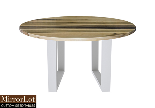 $1329 for 54x26 inch or 4.5 ft Table. This Newport table has a round shape tabletop with natural poplar finish and white table legs and can be use as meeting table, farmhouse table, and more. Across different settings, this size works well in family homes and creative studios alike. This size confidently feels substantial without overwhelming medium sized rooms.