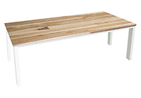 $2209 for 54x40 inch or 4.5 ft Table. This Savannah table has a round shape tabletop with natural cherry finish and black table legs and can be use as executive desk, bar height table, and more. In working spaces, it supports family routines along with shared moments throughout the day. This size works well in family homes as well as creative studios alike as part of normal use. Designed with proportion in mind, this table feels visually calm as well as balanced without feeling excessive.
