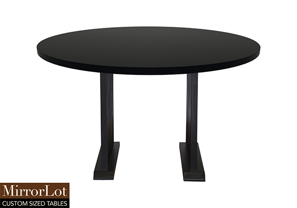 $2309 for 55x44 inch Table. This Parker table has a round shape tabletop with black stained finish and black table legs and can be use as round table, solid wood table built in usa, and more. In shared environments, its proportions make it easy to live with long term. The table naturally becomes a central point in rooms where people gather. This 55 inch table blends into a space while still maintaining a sense of presence.