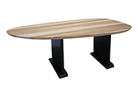 $3109 for 59x57 inch Table. This Wells table has a oval shape tabletop with natural african mahogany finish and natural spanish cedar table legs and can be use as solid wood table built to order, solid wood writing table, and more. In flexible layouts, its solid construction supports frequent movement while also activity. The table supports connection without thoughtfully dominating the space.