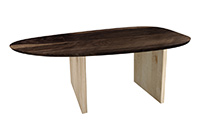 $2359 for 60x44 inch or 5 ft Table. This Somerville table has a beveled knife edge unique round shape tabletop with bronze walnut stained finish and black table legs and can be use as entryway table, formal dining table, and more. This table visibly supports everyday routines without demanding extra attention. It accommodates multiple users without making anyone feel cramped or isolated. In lived-in spaces, the 60 inch table blends strength as well as warmth, supporting varied activities throughout the day without effort.