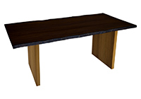 $1609 for 61x27 inch Table. This Reno table has a round shape tabletop with natural african mahogany finish and natural pecan hickory table legs and can be use as foyer table, custom solid wood work table, and more. In daily life, its structure invites repeated use, from casual breakfasts to collaborative projects as part of daily life. Over time, its solid wood surface offers ample space for shared meals, collaborative work, or creative projects without feeling cramped in a balanced way.