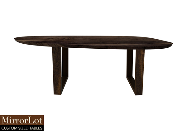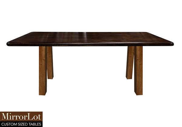 $2429 for 61x42 inch Table. This Burke table has bronze walnut stained finish tabletop and natural african mahogany table legs and can be use as custom solid wood dining table, round table, and more. The table carries a subtle authority that makes arrangements feel organized in everyday use. From day to day, this 61 inch table naturally fits into rooms that see regular, everyday use without feeling forced.