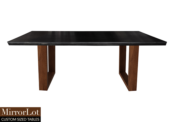 $3029 for 61x57 inch Table. This Jefferson table has black stained finish tabletop and natural african mahogany table legs and can be use as communal table, handcrafted solid wood table, and more. For many people, its surface feels continuous while also spacious, making daily interactions smooth and natural. In many homes, this table quickly becomes a dependable part of everyday life. The wood grain adds visual texture that complements the warmth of communal environments without feeling forced.