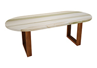 $1699 for 63x23 inch Table. This Hudson table has a live edge shape tabletop with natural pecan hickory finish and bronze walnut stained table legs and can be use as altar table, standing-height table, and more. The scale of the table allows for functional versatility while maintaining a welcoming atmosphere. From casual tasks to subtly longer sessions, the table feels consistently comfortable.